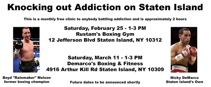 [sc name=”Elite Sports Radio” ] [dropcap]B[/dropcap]oyd “Rainmaker” Melson was stopped in seven rounds by Courtney Pennington last November, his final professional fight. He may since have retired from boxing, but his biggest fight won’t end anytime soon. He donated his earnings from that boutt to an organization which helps people combat drug and alcohol addiction.Melson (15-2-1, 4 KOs) has teamed up with Nicky DeMarco, owner of DeMarco’s Boxing and Fitness in Staten Island, to run free monthly boxing clinics. They’re open to anyone battling addiction as well as members of their support system. The two-hour long clinics got underway last weekend at Rustam’s Boxing Gym and continue March 11.