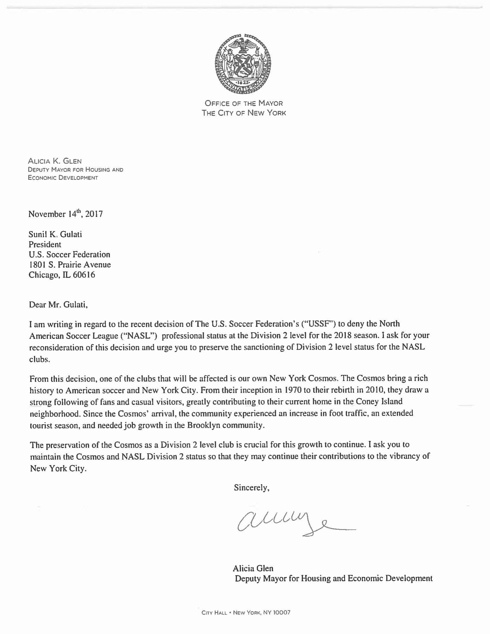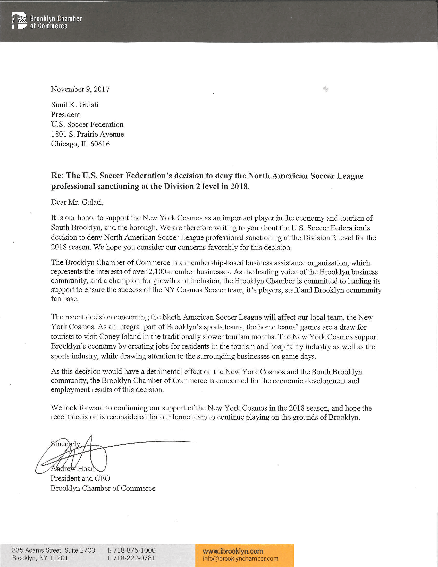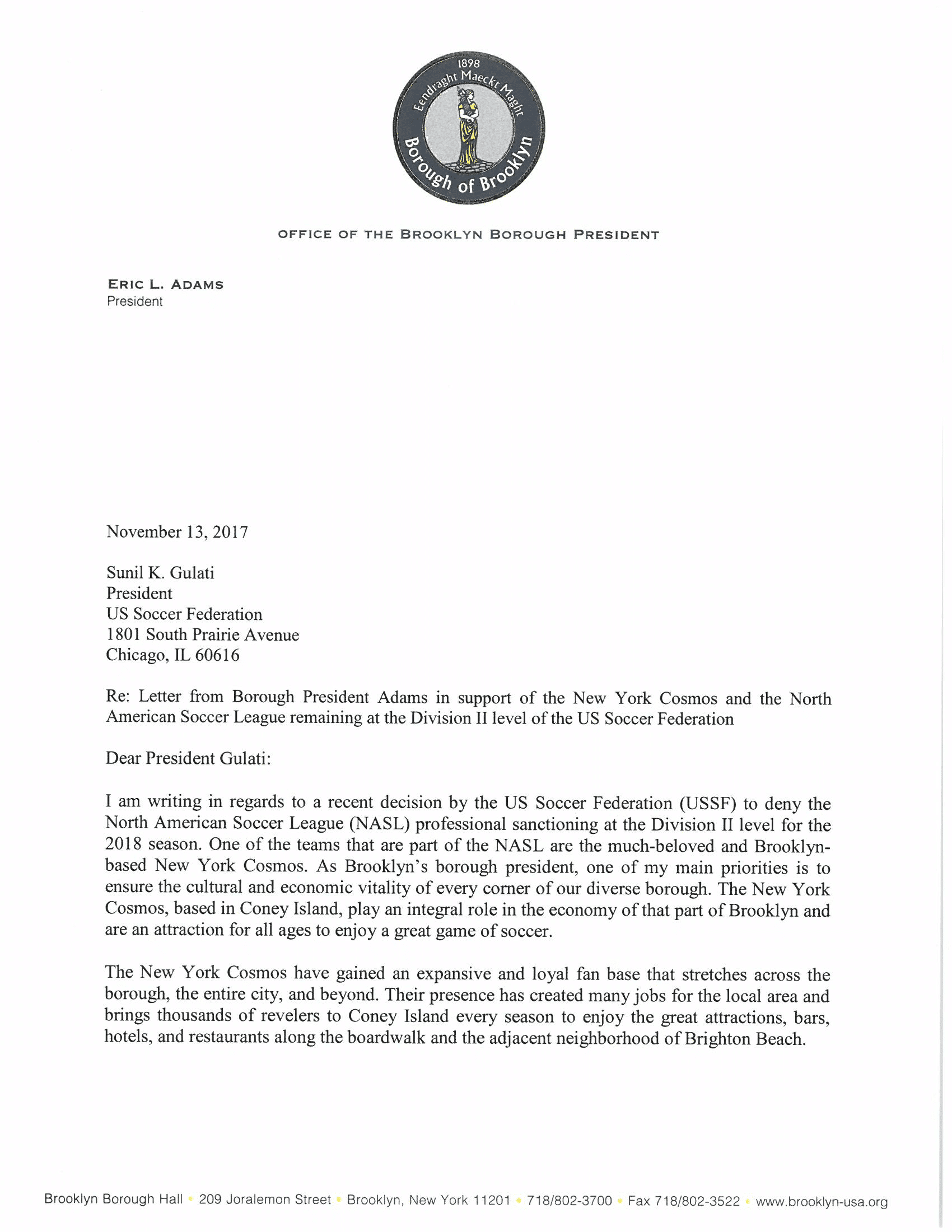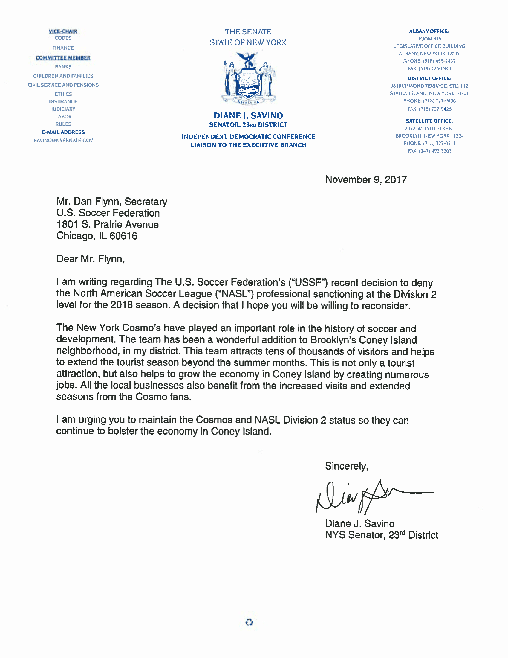 I think it’s great that all of these people took the time to express their concern over your decision and how it impacts the Cosmos, the league, as well as the community as a whole. As you know, the Cosmos spent the first four years of the reboot era on Long Island before relocating to MCU Park on Coney Island in Brooklyn this past season.