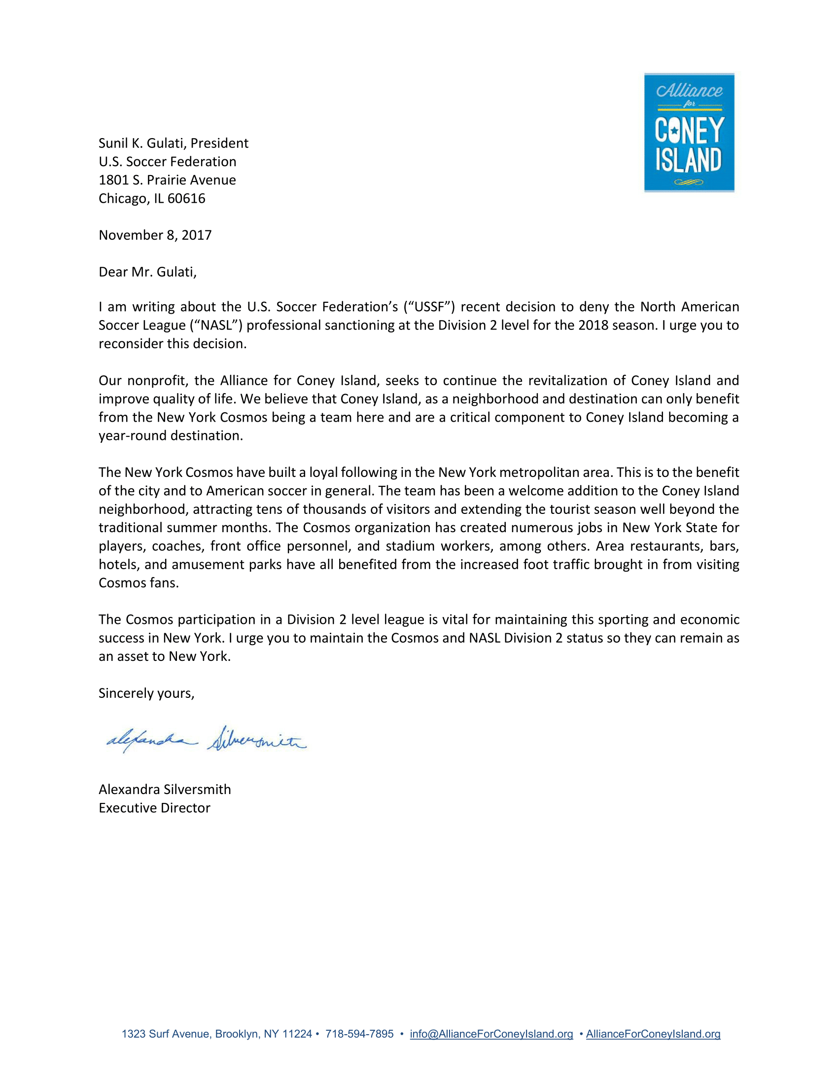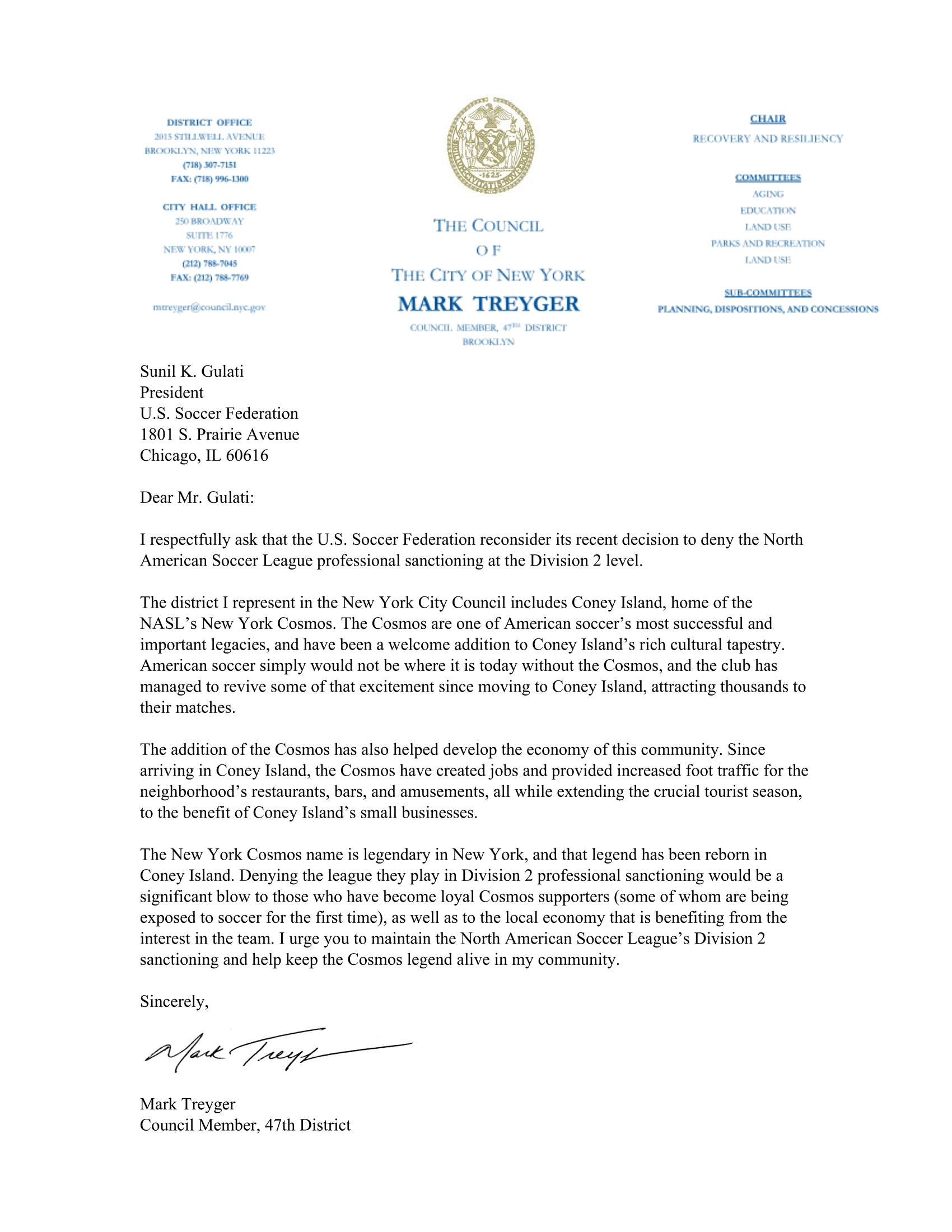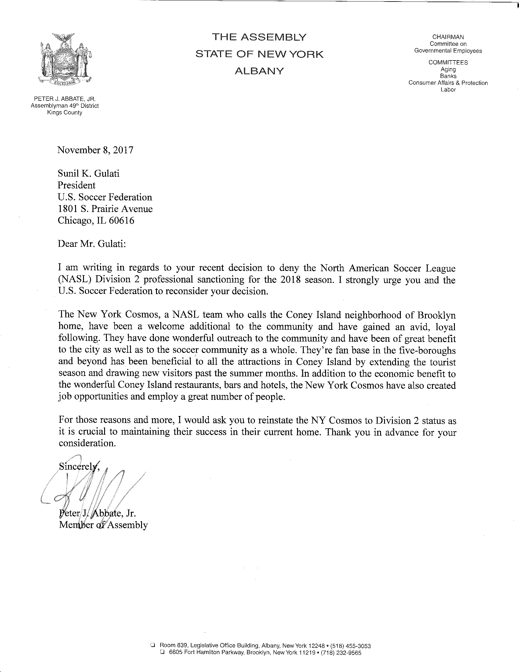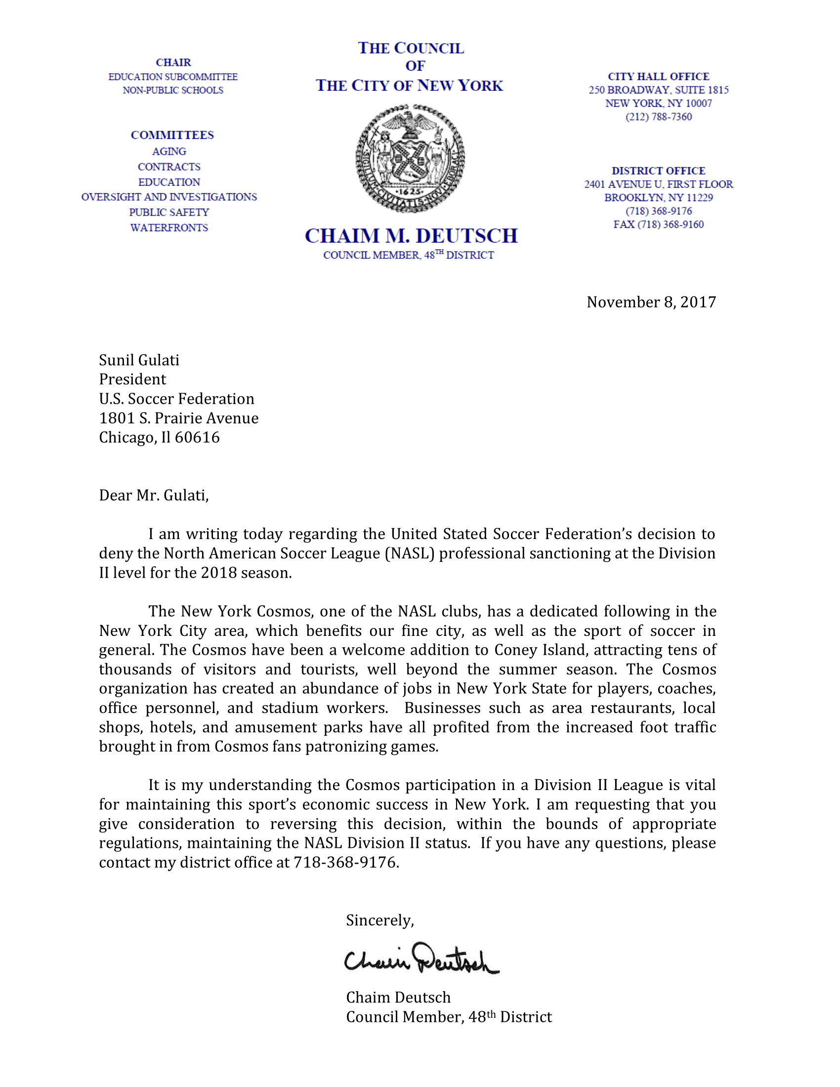 I think it’s great that all of these people took the time to express their concern over your decision and how it impacts the Cosmos, the league, as well as the community as a whole. As you know, the Cosmos spent the first four years of the reboot era on Long Island before relocating to MCU Park on Coney Island in Brooklyn this past season.