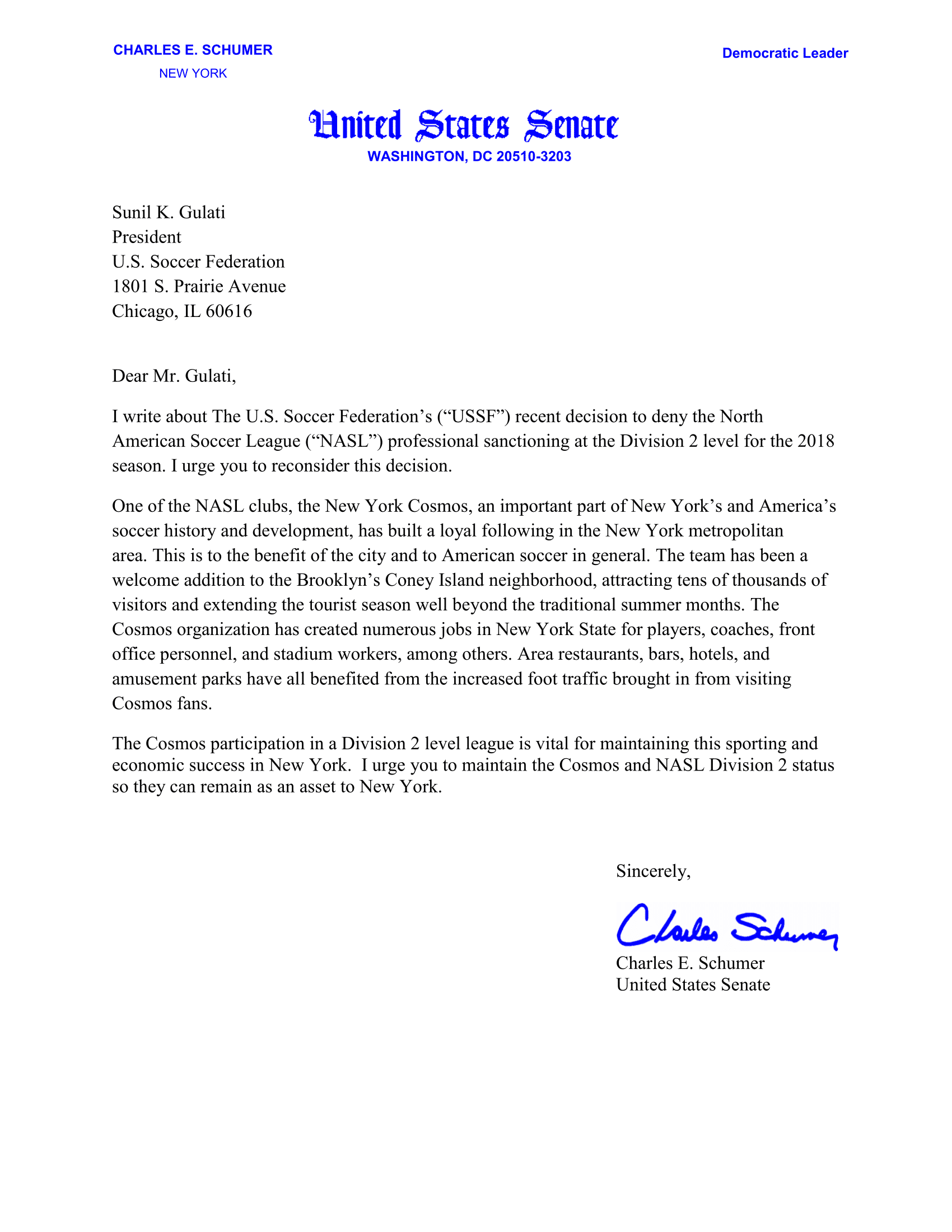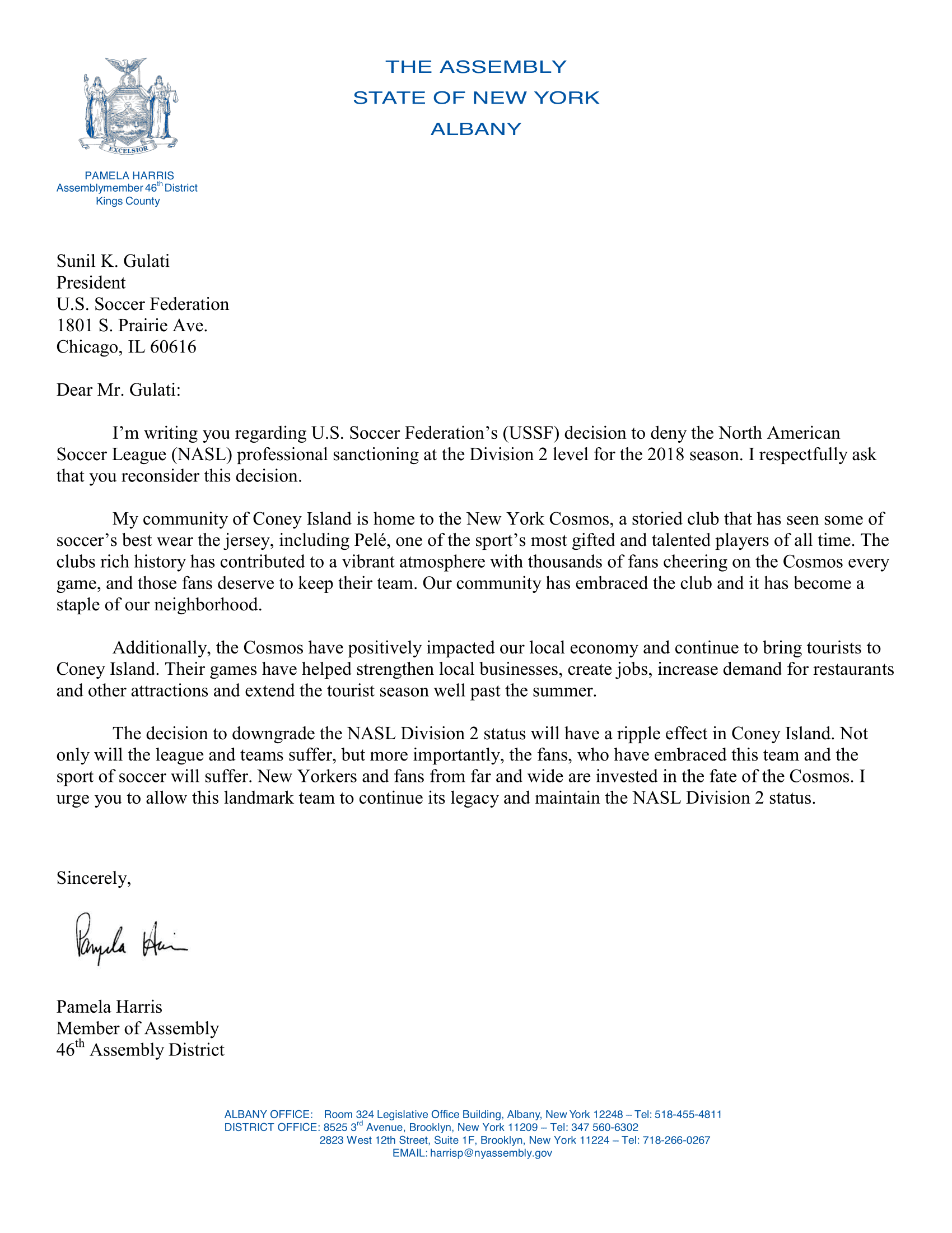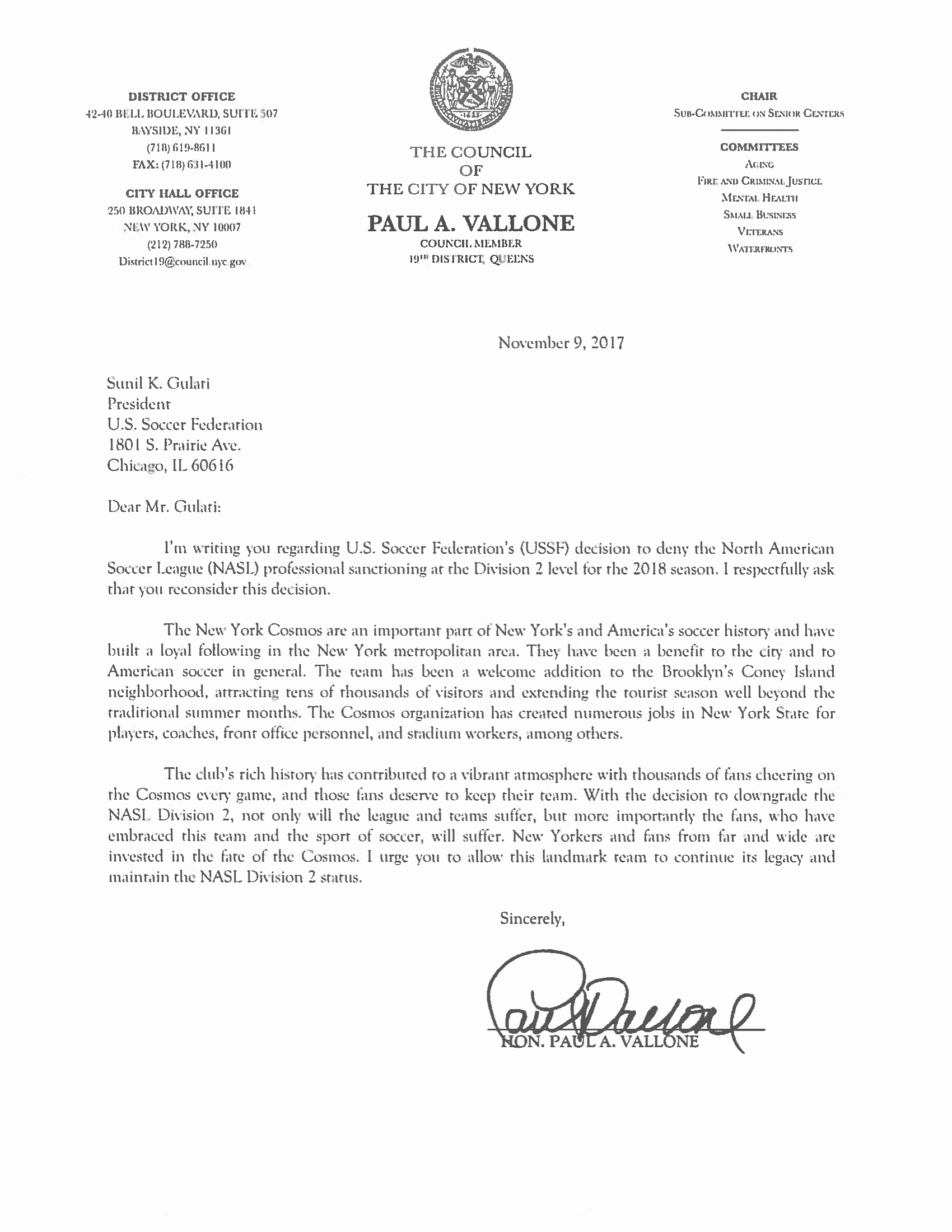 Over the last few weeks, your organization has received a number of letters from local politicians and community groups urging you to reconsider your decision to strip the NASL of its Division Two status for the 2018 season. I’m sure all of you are extremely busy with some other things going on with U.S. Soccer, so you might not have gotten around to reading all of them just yet.