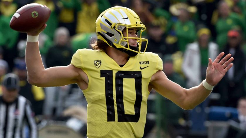 Entering his bowl game this season (against Michigan State, 12/31, 3 PM, FOX), Herbert has had a strong season. He’s thrown the ball for 2,985 yards on 59.6 percent completions, and has a 28:8 TD:INT rate. He’s added 173 rushing yards and two touchdowns on the ground.