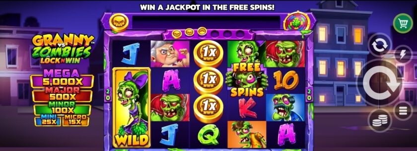 Each spin features an animated granny doing her best to do away with a series of different animated zombies. The cartoon appearance is appealing to the eye and brings added entertainment while competing for big bucks.