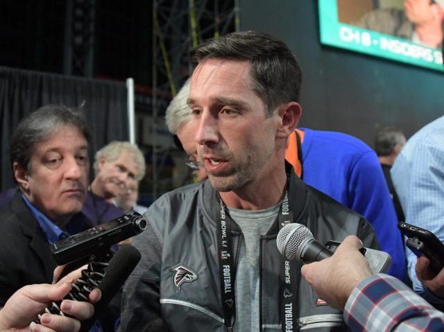 Atlanta Falcons’ Kyle Shanahan loses backpack at Super Bowl media day